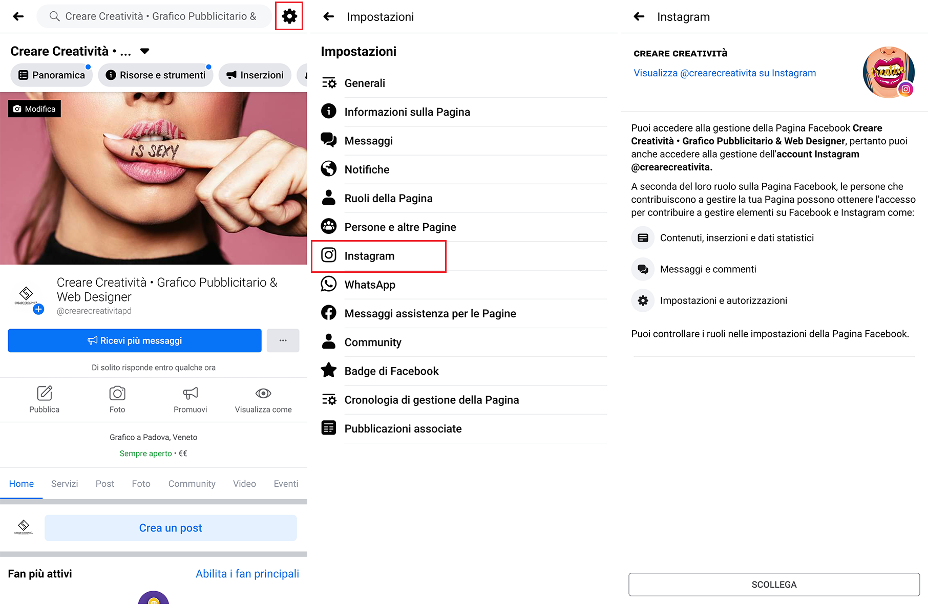 Collegare pagina Facebook a Instagram:
