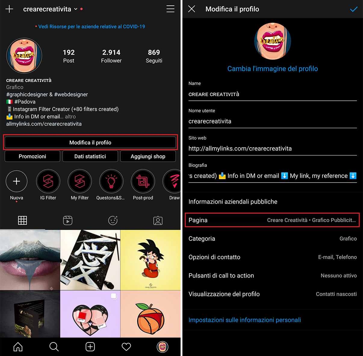 Collegare pagina Instagram Professionale a Facebook:
