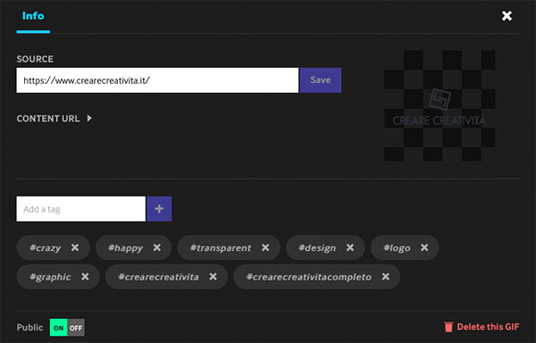 Non dimenticare inoltre una volta che hai caricato la Gif su Giphy di aggiungere i tag!