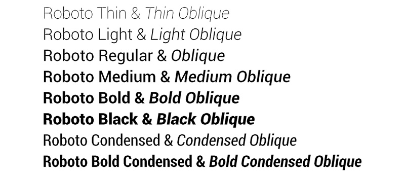 Così come nel mondo “stampato”, la tipografia svolge un ruolo importante nel linguaggio del material design andando a creare differenti tipologie dello stesso font che si adattano alle necessità di ogni contenuto.
