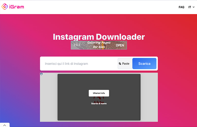 Il funzionamento è molto simile ai due siti precedenti, vi basterà copiare il link della foto, video, reels o stories Instagram che volete scaricare e il sito vi risponderà con il contenuto da scaricare. Inoltre per questo sito è presente anche l’App per Android.