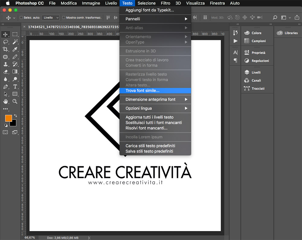 Aprite la vostra immagine in Photoshop e andate su Testo – Trova font simile…